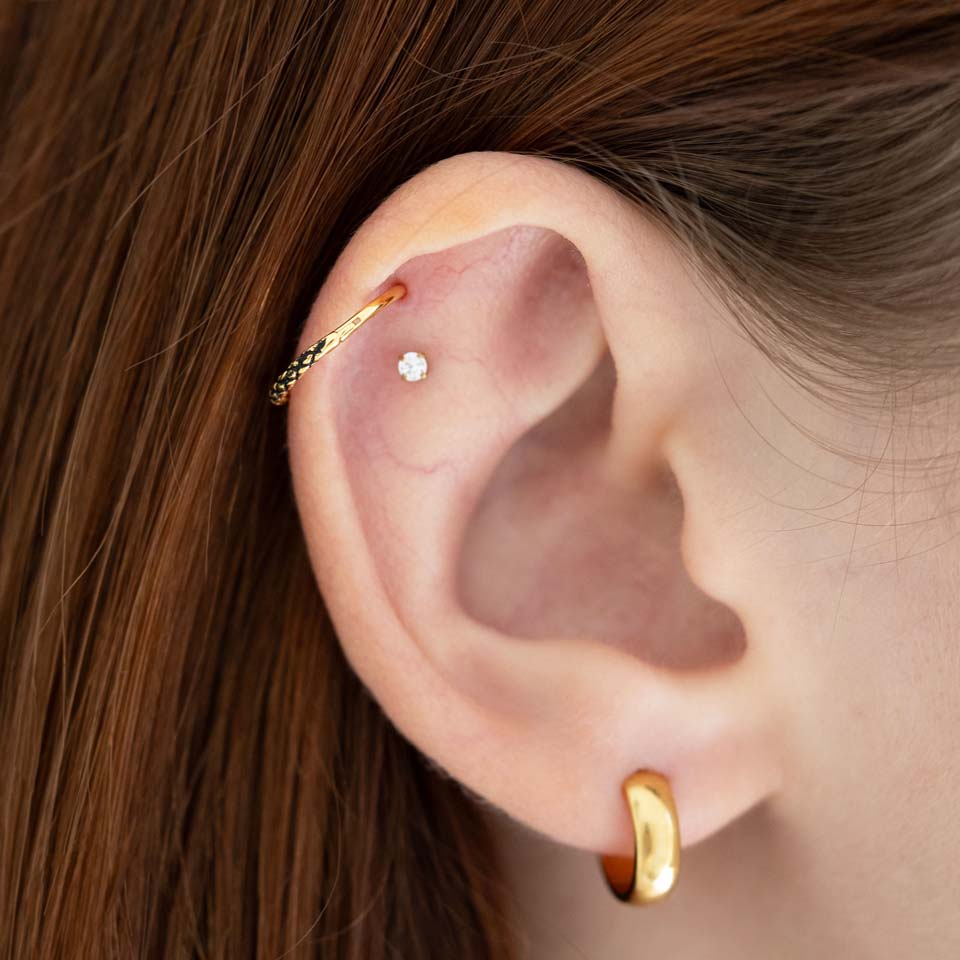 Plaatsing: Tragus, Spiderbite, Snakebite, Septum, Rook, Neusvleugel, Lower labret, Oorlel, Helix, Daith, Forward helix