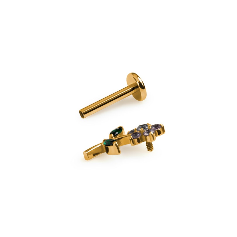 Het interne schroefdraad maakt het indoen irritatievrij en stevig, zodat je het sieraad niet kwijtraakt midden op de dag. Beschikbaar in gouden of zilveren afwerkingen, werkt deze labret voor de conch, helix, of oorlel. Een bloemig momentje dat altijd past.