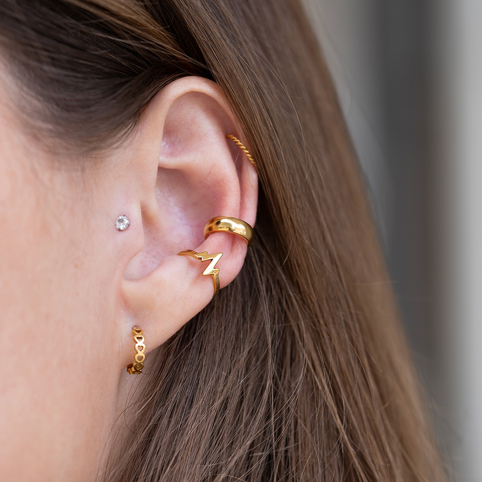 Deze stijlvolle segmentring met hartslag-design is verkrijgbaar in twee diameters: 9 mm en 10 mm. Zo zit 'ie altijd comfortabel, waar je de ring ook draagt. Perfect voor verschillende oorpiercings, zoals je helix, oorlel en rook.
