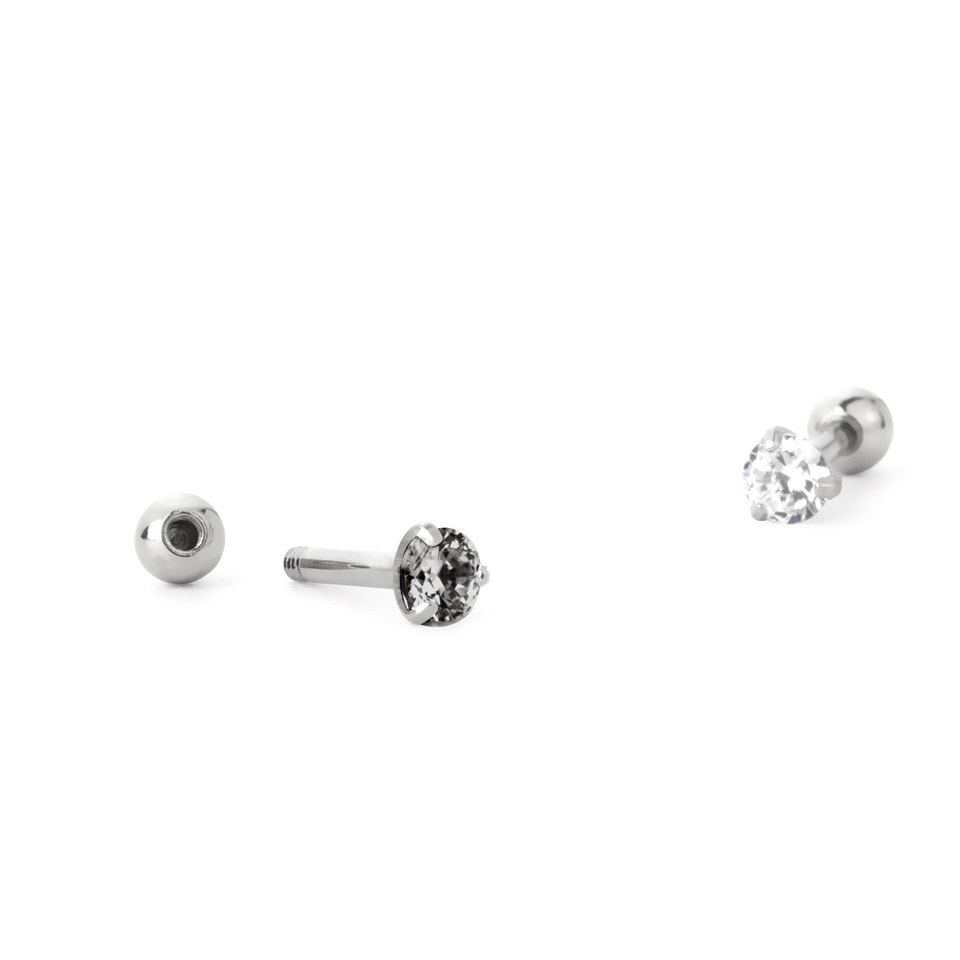 Hier kun je drie matchende oorpiercings in een set bestellen. De steentjes hebben verschillende groottes. Dat staat super leuk wanneer je bijvoorbeeld drie gaatjes in je oorlel hebt en ze naast elkaar zet, maar het is ook leuk om ze bijvoorbeeld in je helix en traguspiercing te dragen.