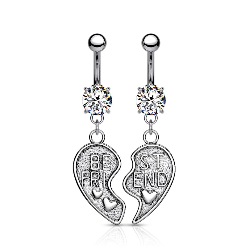 Deze twee navelringen zijn gemaakt van chirurgisch staal van hoge kwaliteit, dus maak je geen zorgen over schadelijke stoffen. Draag dit sieraad en je beste BFF zal altijd bij je zijn!