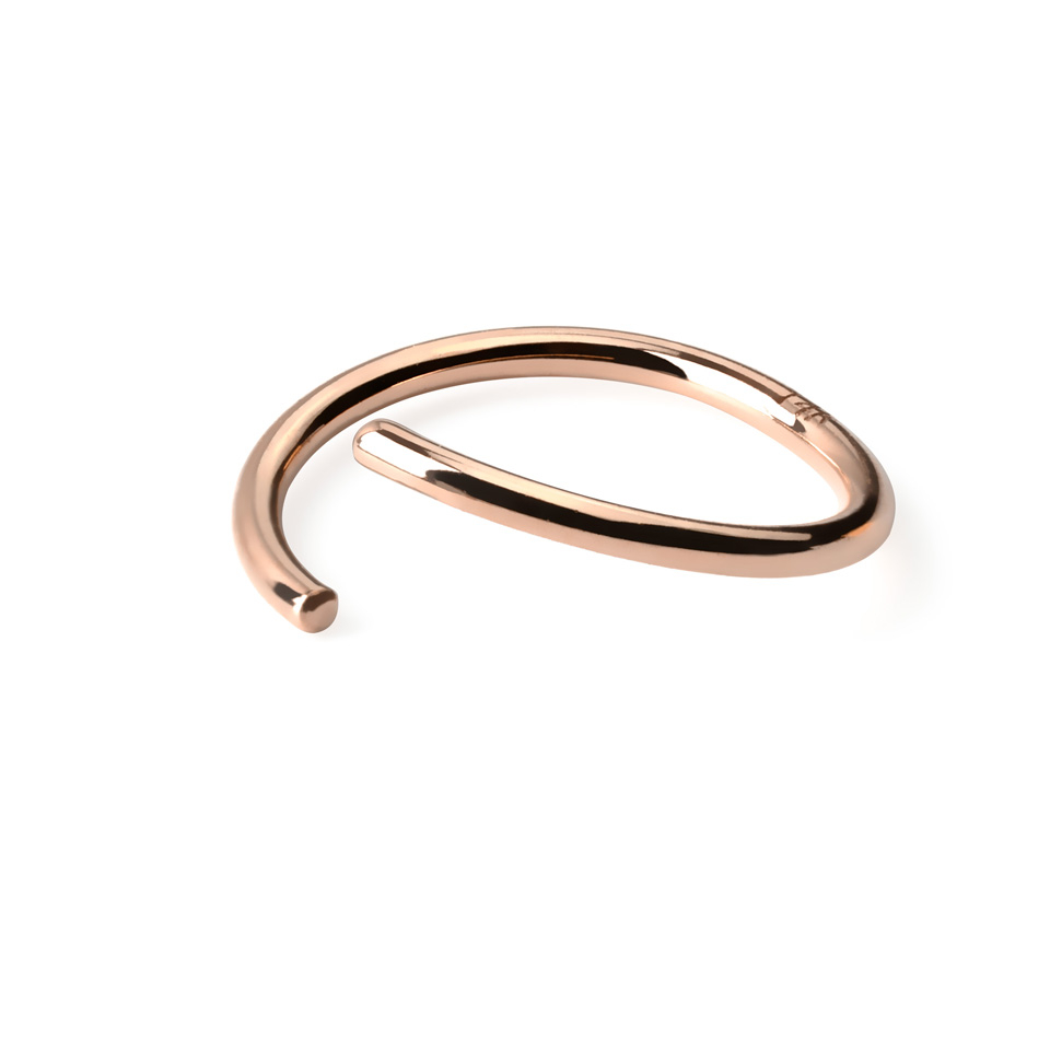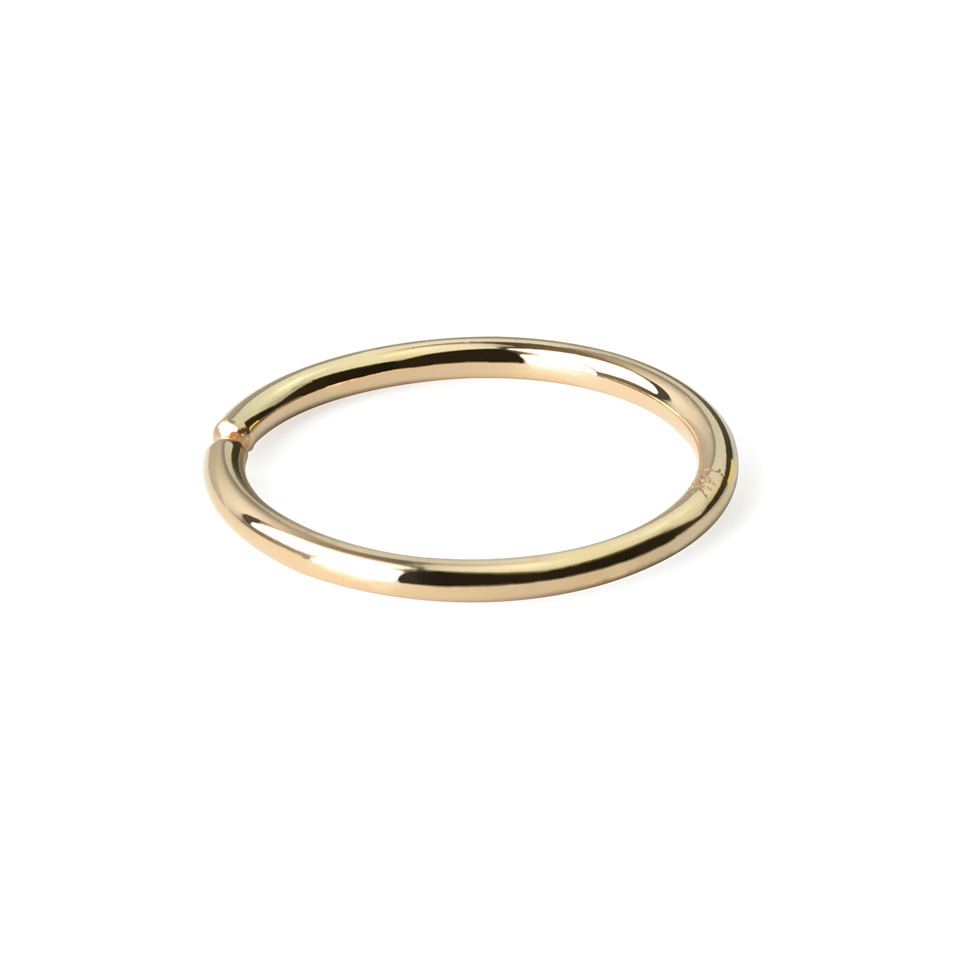Keep it simple, dat is wat deze piercing ring signaleert wanneer deze in je piercing zit. De ring is niet uitgerust met een sluitmechanisme als een sluitballetje, een scharnier of andere fancy dingen. De ring bestaat uitsluitend uit één stuk 14 karaats goud, dat de vorm van een cirkel gekregen heeft, met een kleine opening zodat je toch nog de mogelijkheid hebt om het sieraad in en uit je lichaam te kunnen doen. Wij hebben er alles aan gedaan om de opening zo klein mogelijk te maken, en de opening tussen de twee uiteinden is ook een klein beetje kleiner dan op de productafbeelding. De afstand op de productafbeelding is een klein beetje groter gemaakt om te illustreren dat er wel een afstand zit tussen de twee uiteinden, want als je het sieraad in je handen hebt, zul je zien dat je de opening eigenlijk niet kunt zien.