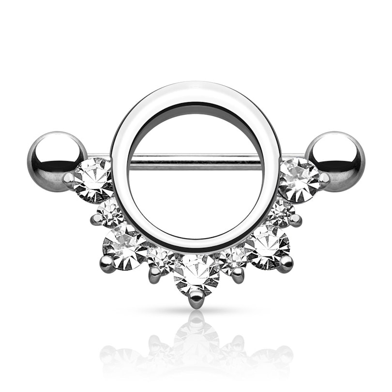 Hier zie je het perfecte sieraad voor de vrouw die graag zowel ondeugend als vrouwelijk tegelijkertijd wilt zijn in haar keuzes voor tepelpiercings. Deze tepelpiercing is ontworpen in een stijlvol design van chirurgisch staal, met een mooie en glanzende ronde ring die de tepel omlijst.
