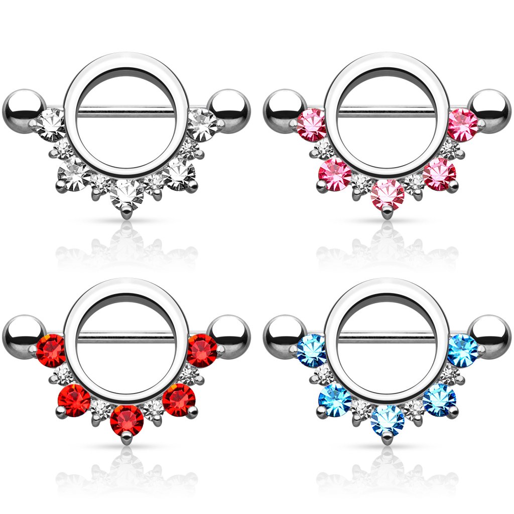Naam: Tepelpiercing met een boog van steentjes
