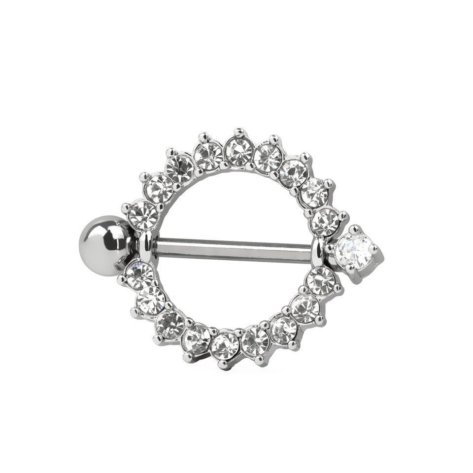 Dit sieraad wordt ook wel een ''nippelrounder'' genoemd, aangezien deze de tepel helemaal bedekt. De randen van het schild zijn bedekt met mooie transparante steentjes en de bijbehorende staaf is met een mooie steen afgesloten i.p.v. een balletje.