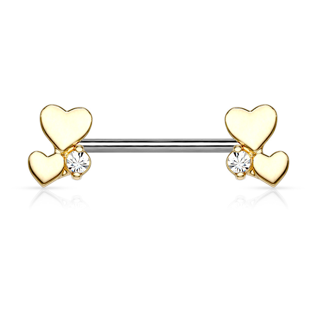 Tepelpiercing met hartjes en steen aan elk uiteinde
