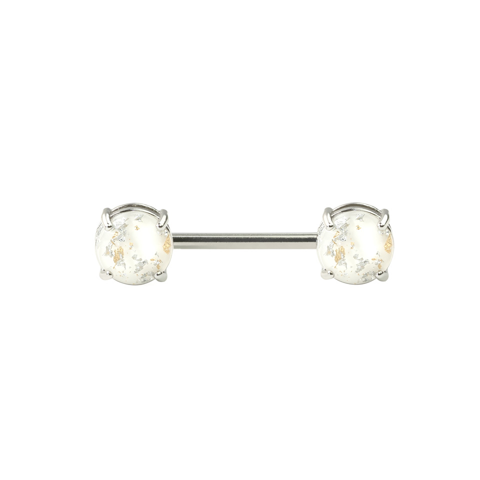 Hier kun je nu een tepelpiercing kopen met een steen aan ieder uiteinde van de staaf. Deze steentjes doen een beetje denken aan lavalampen, alleen dan wel zonder de vloeiende bewegingen. De steentjes zijn namelijk van een soort hars gemaakt om ze zo een soort lava look te geven. Daarmee hebben de steentjes ook hun mooie kleurenspel gekregen. Zichtbaar zijn de hoofdkleuren en de aangrenzende kleuren. Je kiest zelf de kleur van de steentjes: kies bijvoorbeeld voor een blauwe steenkleur of juist een lila steenkleur.