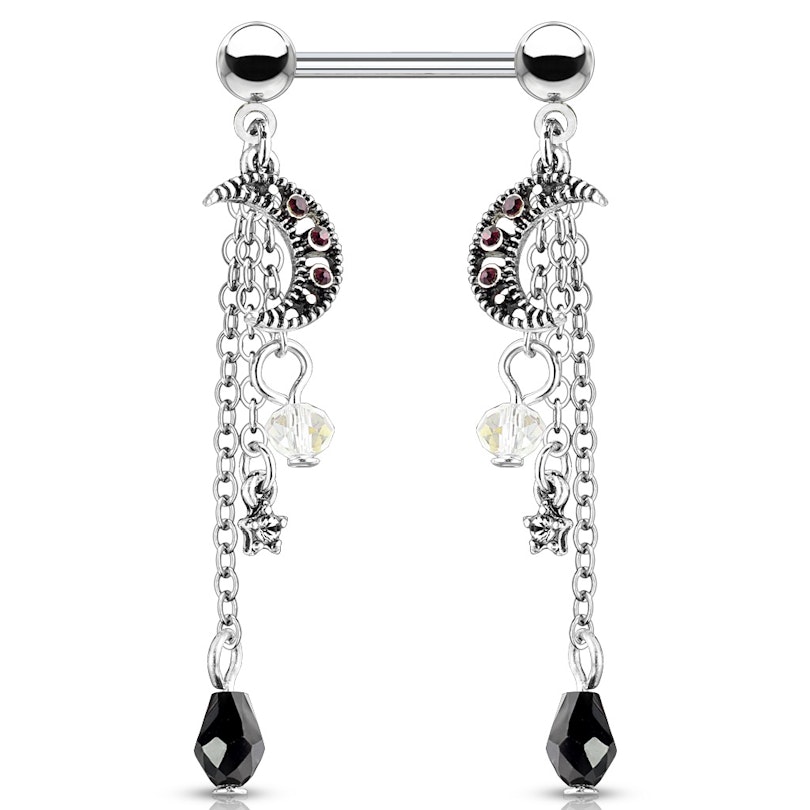 Naam: Tepelpiercing met sterretjes en maantjes hangers