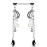De tepelpiercing die je kunt zien op de afbeelding hierboven doet een beetje denken aan een sterrenstelsel. Je ziet hier maantjes, sterretjes en kleine ''meteorieten in de vorm van facet geslepen steentjes. Alle onderdelen hangen vrij in kleine kettingen aan een sluitballetje aan het einde van de staaf. De staaf is 14 mm lang en gemaakt van chirurgisch staal.