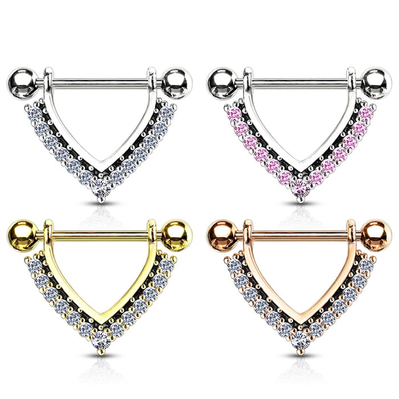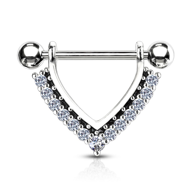 Tepelpiercing met v-vorm met steentjes