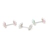 De staaf van dit juweel bestaat uit chirurgisch staal en het ontwerpt bestaat uit messing. Het messing werd gecoat met rhodium, waardoor het metaal zijn glanzende kleur krijgt. De stenen zijn in meerdere keuren verkrijgbaar, waauit je vrij kan kiezen.
