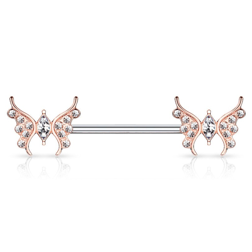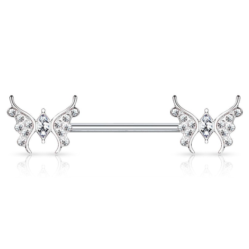 Naam: Tepelring met vlinders en steentjes
