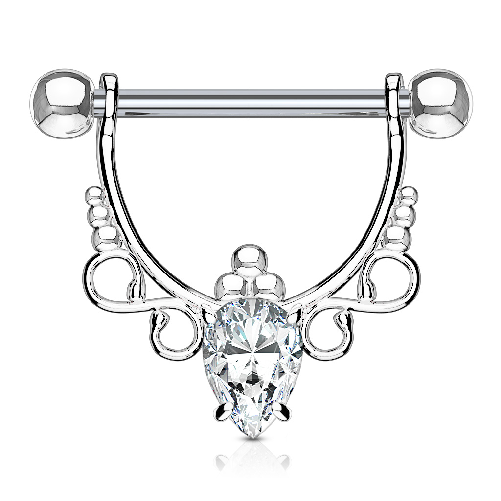 Naam: Tepelschild met filigraan motief en peervormige steen