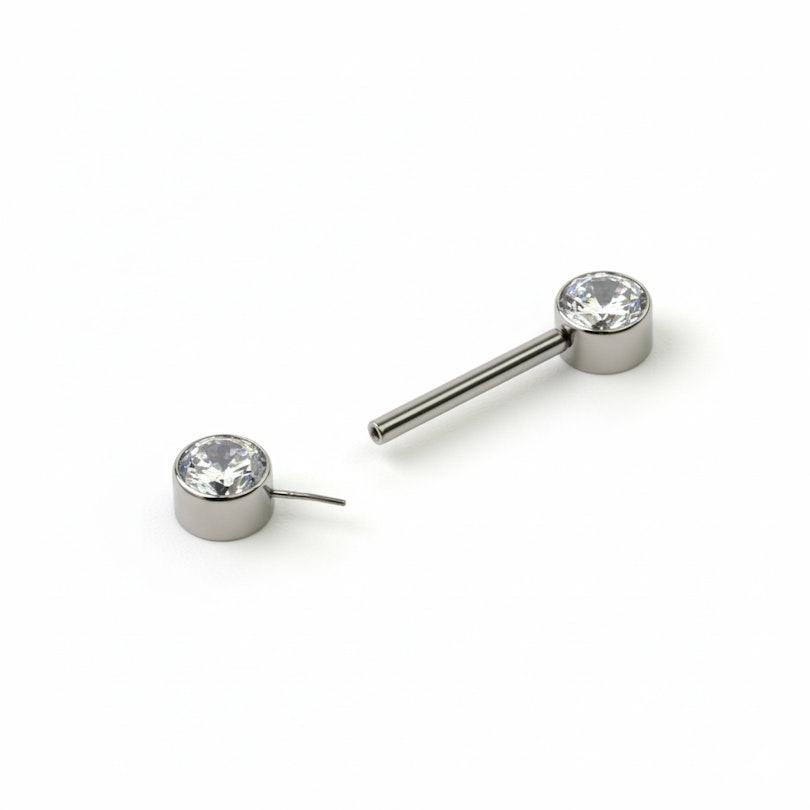 Naam: Tepelstaaf uit titanium met push-in steentjes