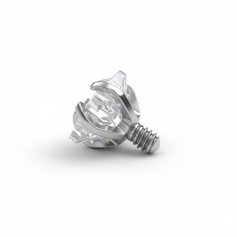Gemaakt van hypoallergeen ASTM F136 titanium, is het waterproof, duurzaam, en ontworpen om te passen op 1,6 mm dermals met een 1,2 mm intern schroefdraad. Met de goede tools kan het verwisseld worden als je klaar bent voor een nieuwe look. Makkelijk, simpel en het beste zorgvuldig gedaan.