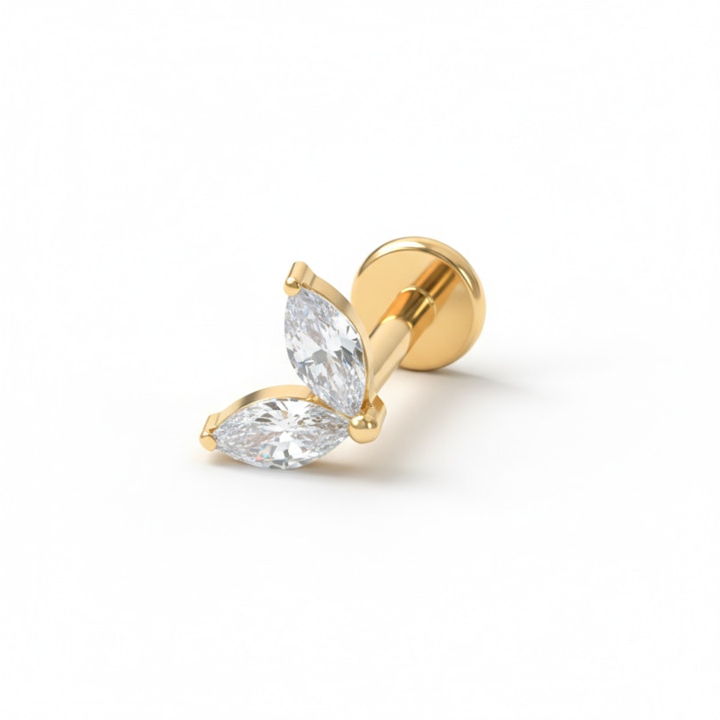 Deze titanium labret met twee stenen is een subtiele flex met stenen die perfect het licht vangen. Niet extra, niet basic. Net goed, je piercing sieraden zien er moeiteloos goed uit.