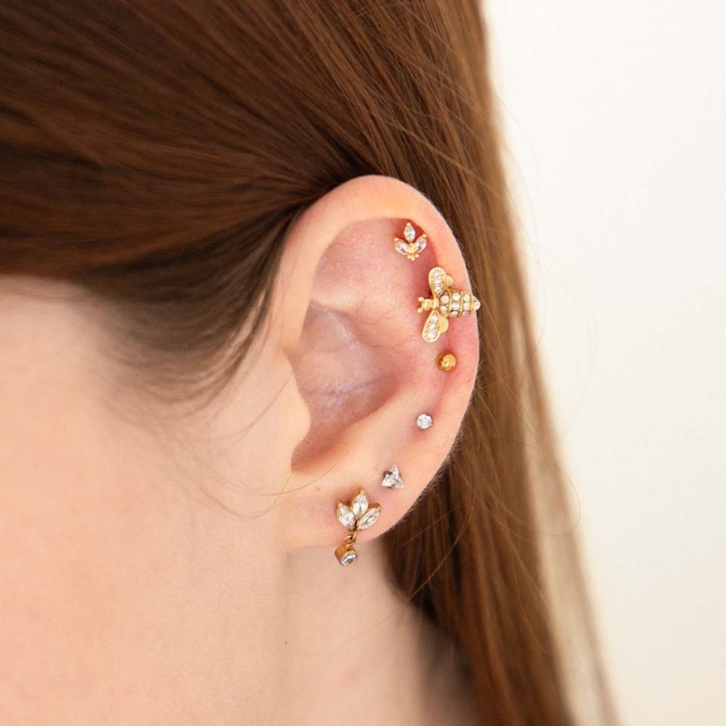 Plaatsing: Tragus, Spiderbite, Snakebite, Medusa, Madonna, Lower labret, Oorlel, Helix, Conch, Forward helix, Angelbite