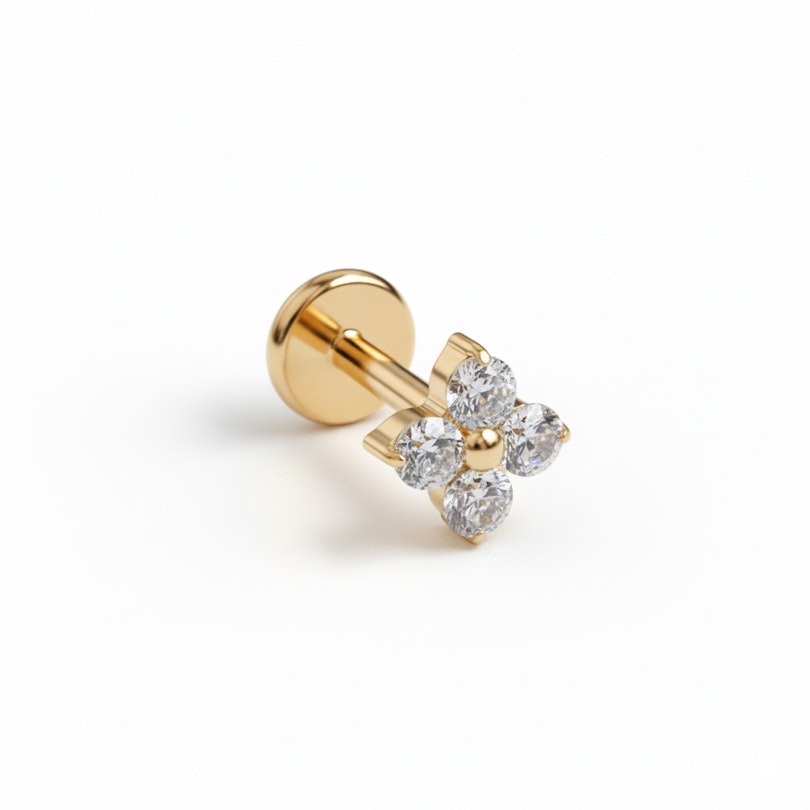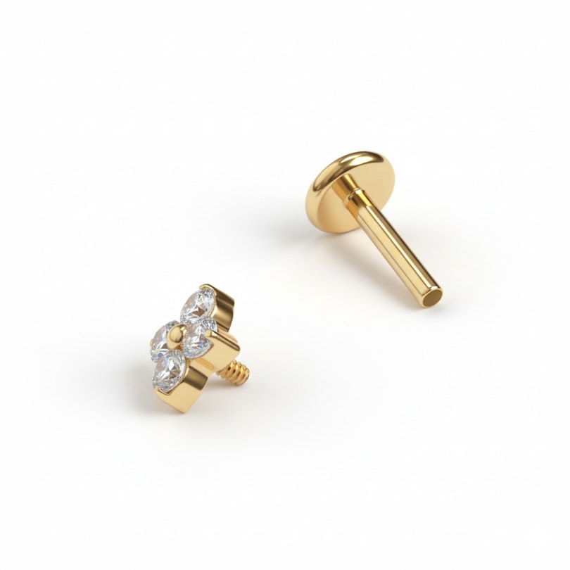 Gemaakt van titanium, dus hypoallergeen, waterbestendig en duurzaam voor dagelijks gebruik. De interne schroefdraad zorgt voor soepele plaatsing en een veilige pasvorm, zodat die precies blijft zitten waar die hoort. Afgewerkt met een platte achterkant voor comfortabel draaggemak, de hele dag door.