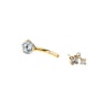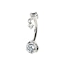 Deze mooie navel ring heeft een ronde CZ steen aan de onderkant, en een kleiner vierkant steentje aan de bovenkant, waar een bedeltje aan hangt. Alle steentjes zijn gezet met tandjes.