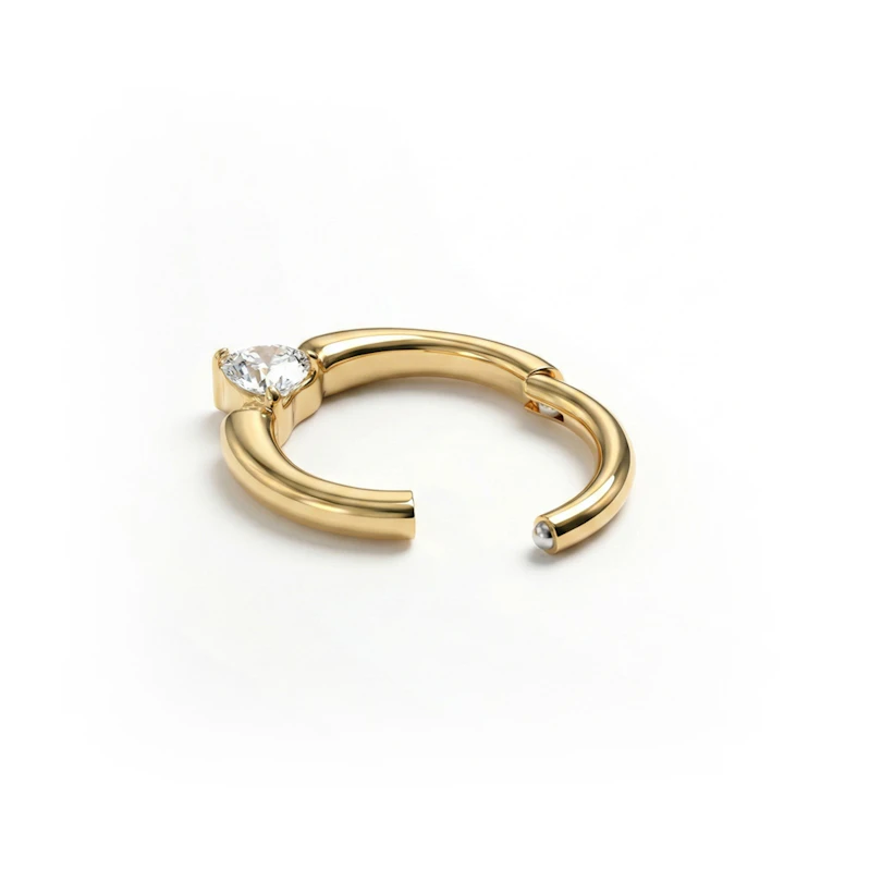 Het hartsteentje in tandzetting zorgt voor extra stevigheid en laat het licht maximaal vangen. Geschikt voor daith-, helix- en septumpiercings, is deze veelzijdige ring gemaakt om mee te bewegen met jouw persoonlijke stijl.