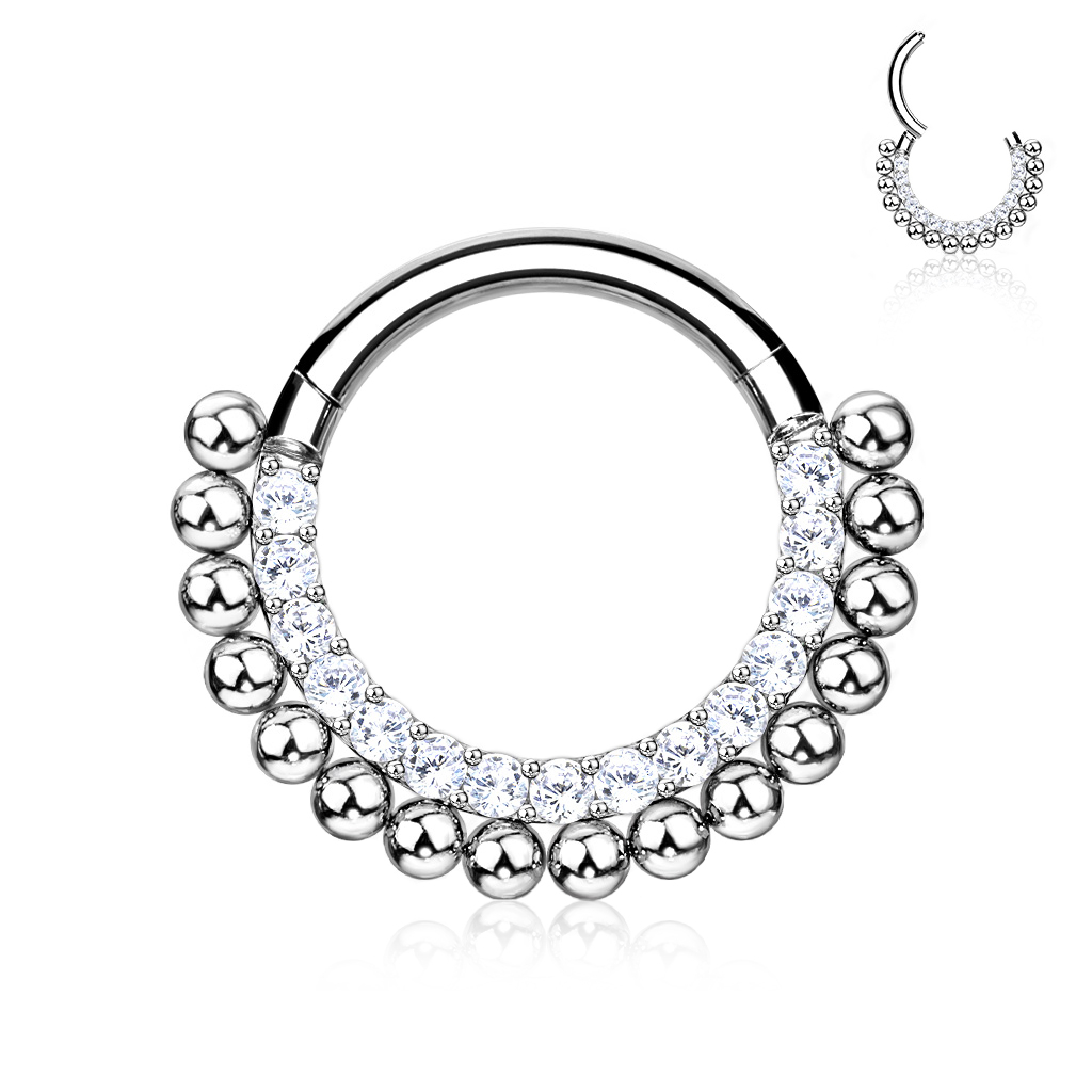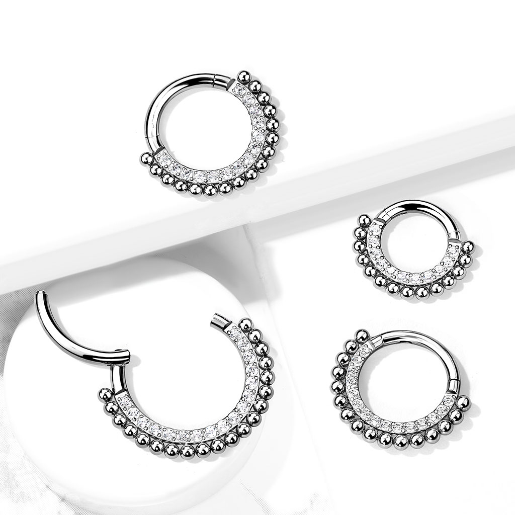 Titanium is ƩƩn van de beste materialen voor piercingsieraden. Vaak is titanium een beetje saai omdat het geen versieringen bevat. Dit sieraad heeft echter prachtige details gemaakt van steentjes en kralen.