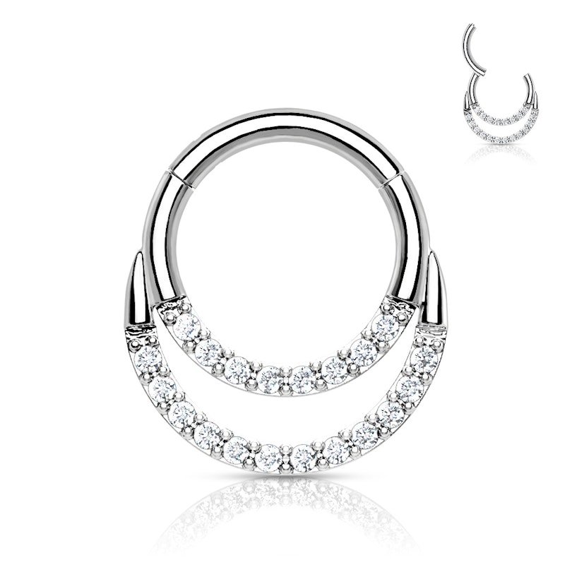 Titanium ring met scharnier en twee rijen stenen