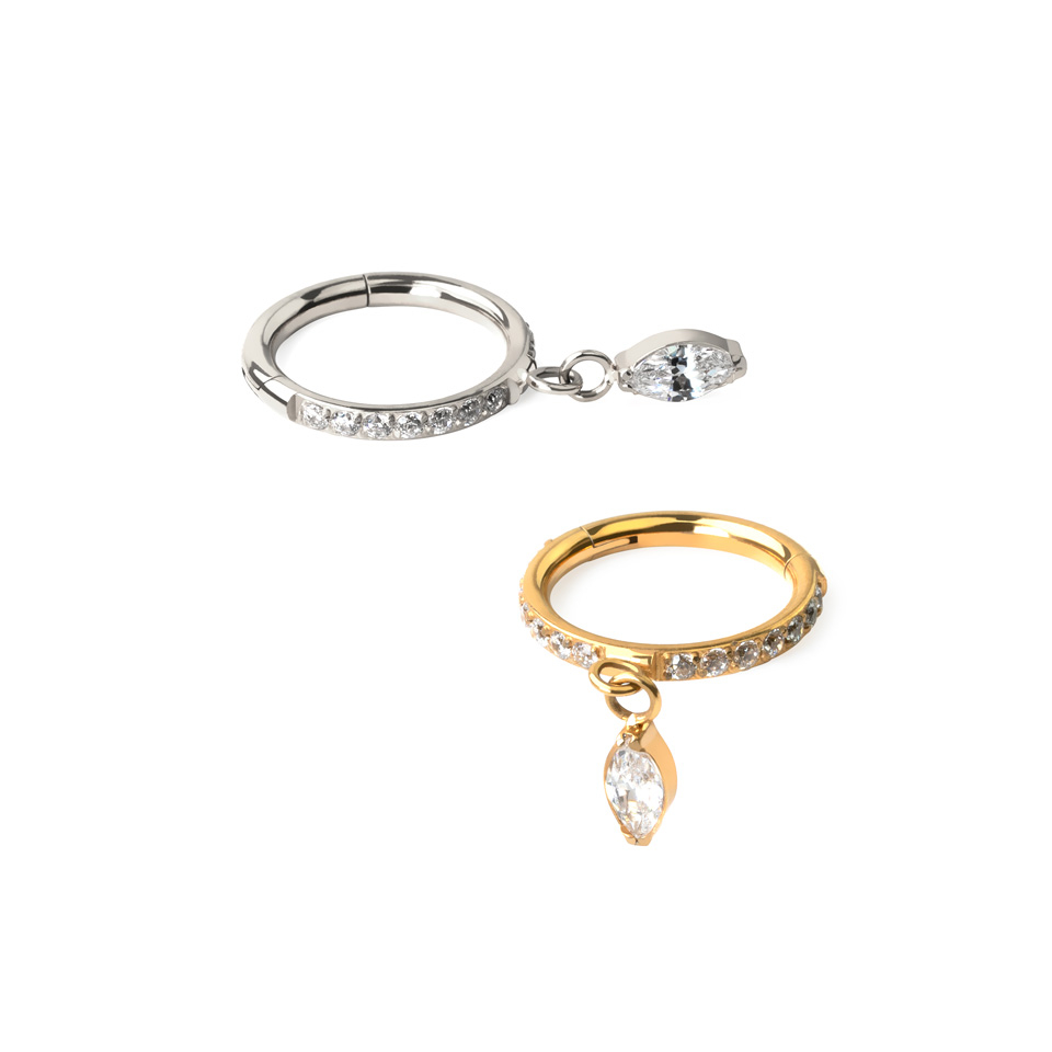 Titanium ring met scharnier gezet met steentjes en een marquise geslepen bedel