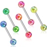 Deze tongpiercing is in vijf verschillende kleuren verkrijgbaar. De balletjes van dit sieraad zijn gemaakt van acryl en de staaf is gemaakt van echt chirurgisch staal. Beide materiaal zijn geheel veilig voor piercingssieraden en geven geen nikkel of andere schadelijke stoffen vrij. Acryl heeft tevens ook als voordeel dat het je tanden niet beschadigt in het geval dat je met het sieraad tegen je tanden aan tikt.