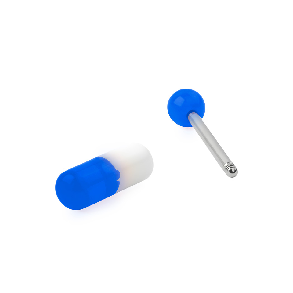 Leg de pil op het midden van je tong, buig je hoofd naar achteren en slik het door. Zo hoor je het te doen wanneer je een pil moet slikken, maar hier kun je een pil krijgen die op je tong blijft liggen, ongeacht wat je ook doet. Je ontvangt hier namelijk een eeuwigheidspil in de vorm van deze enigszins provocerende tongpiercing.