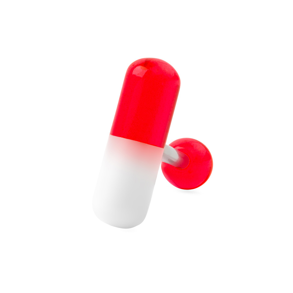 De staaf van deze tongpiercing is gemaakt van chirurgisch staal, terwijl de sluitbal en de super vette twee kleurige pil van acryl gemaakt zijn, een veilig materiaal om in de mond te gebruiken. Acryl is een plastic materiaal dat naast dat het nikkelvrij is, ook nog eens beschermend is voor je tanden en tandvlees wanneer je het in je mond draagt.