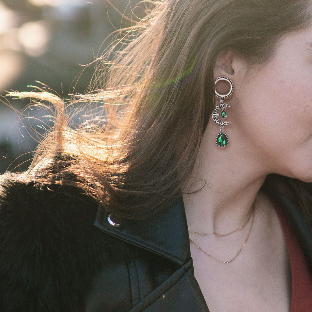 Het overgrote deel van de tunnels bestaat alleen uit de ring zelf - als je geluk hebt zitten er ook enkele decoratieve elementen op. Hier op dit model hebben we een grote stap gezet en een lange hanger aan het sieraad toegevoegd. De focus ligt niet langer op de ring, maar op de hanger eronder.
