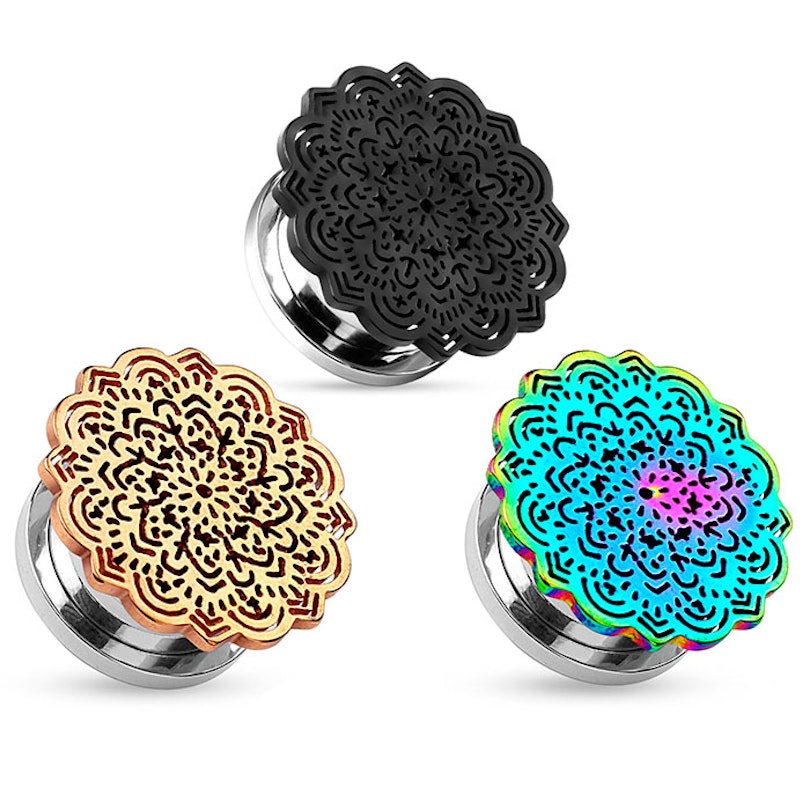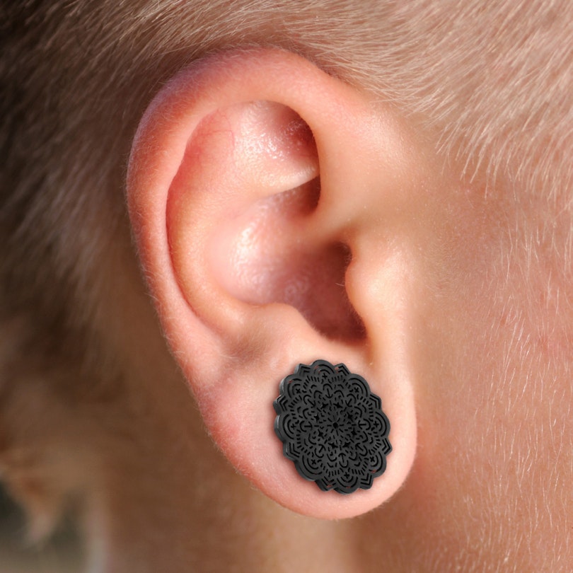 Hier ontvang je de mooie en bijzonder gedetailleerde mandala in een zwarte kleur, die het sieraad werkelijk een scherp randje verleent en het mooie design nog mooier naar voren brengt. Als het sieraad in het oor zit, dan is de zwarte mandala het enige wat zichtbaar is van voren. De eigenlijke tunnel is namelijk gemaakt van glanzend chirurgisch staal en heeft een praktisch schroefdraad.