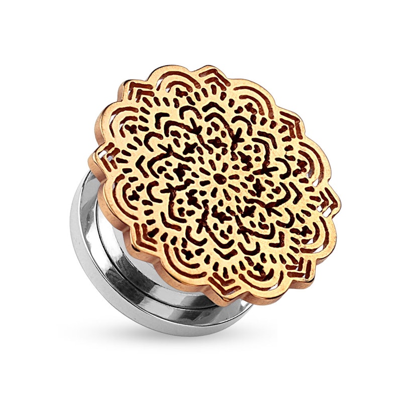 Naam: Tunnel uit chirurgisch staal met een mandalamotief