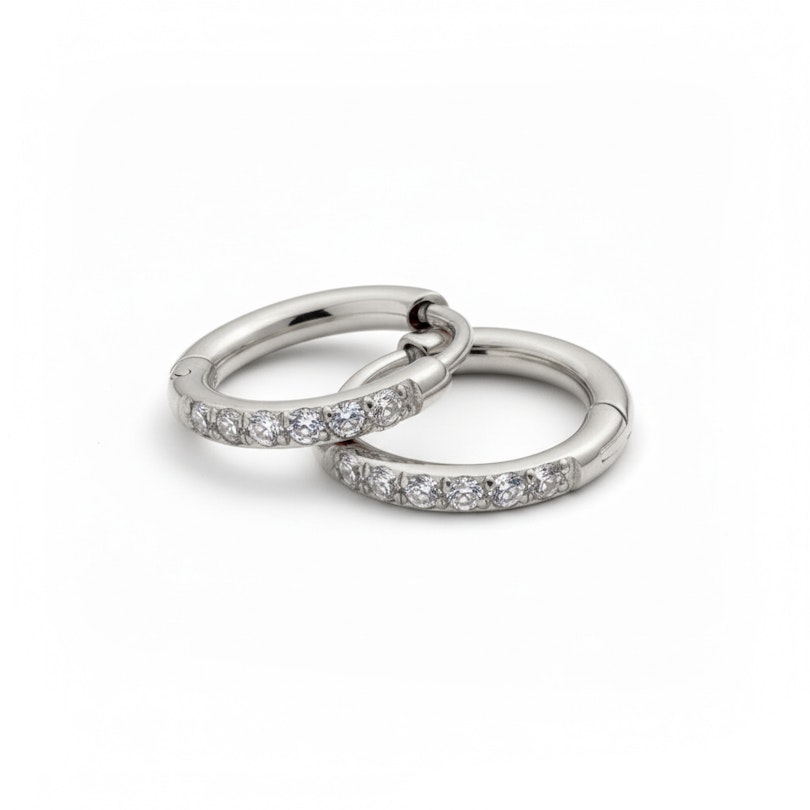 Naam: Tweetal huggie ringen van chirurgisch staal met steentjes