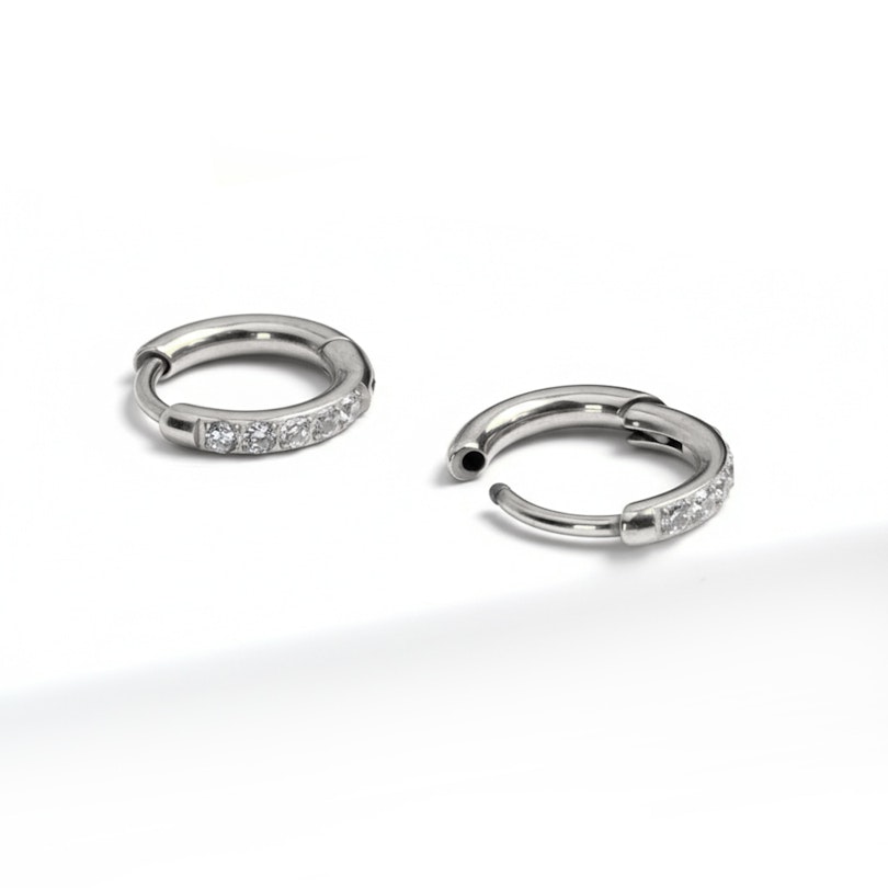 Naam: Tweetal titanium huggie ringen met steentjes