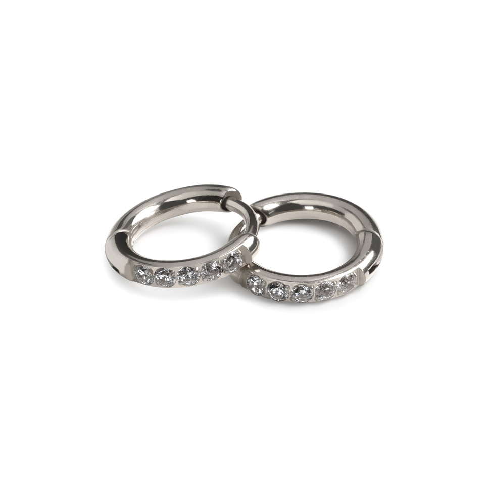Naam: Tweetal titanium huggie ringen met steentjes