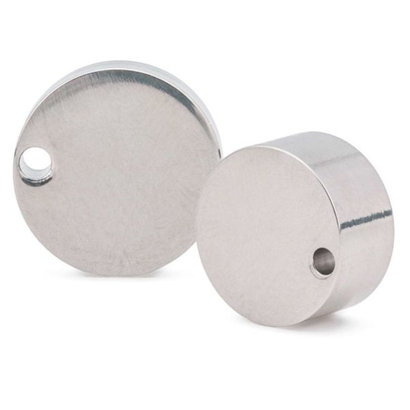 De adapter verkopen wij in verschillende groottes. De kleinste grootte begint bij 2,5 mm. Alle hebben dezelfde breedte en dezelfde gatgrootte en plaatsing van het gat. De adapter is 6 mm breed en heeft een gat van 1,7 mm in diameter. Dit gat is dicht bij de rand van de adapter geplaatst, zoals een septumclicker naar beneden kan hangen wanneer het in de piercing zit.