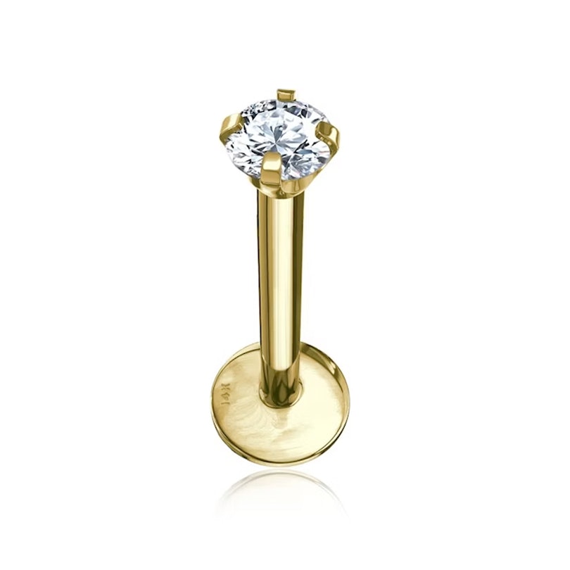 Naam: Labret van 14 karaats goud met schroefdraad en steentje