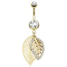 Naam: Vergulde navelpiercing met een bladerenhanger
