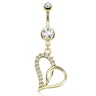 Vergulde navelpiercing met een hart en doorzichtige steentjes