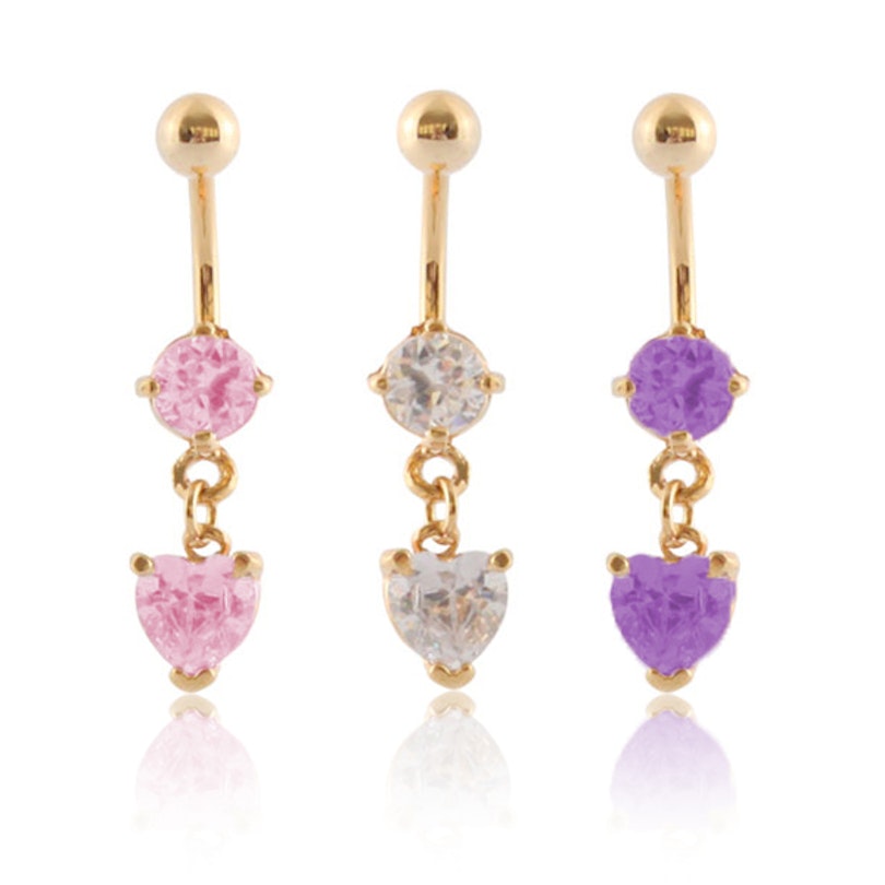 Naam: Vergulde navelpiercing met stenen en hartvormige hanger