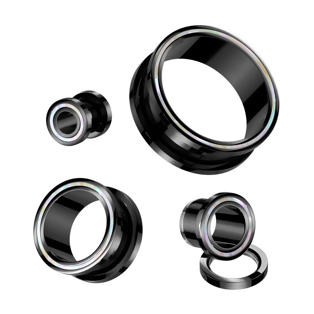 Wie zei er dat tunnels basic moeten zijn? Deze zwarte tunnel met parelmoeren randje brengt drama met een gedurfde en gladde finish. Vergelijk het met een ādark modeā voor je oren, maar elegant.